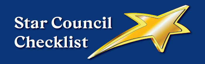 Download the Star Requirements Checklist Page – Form. This is a one page checklist that covers everything for achieving the Start Council Award. Print it out to track your progress. That page with the details contained on this web site will guarantee that you council will make star.